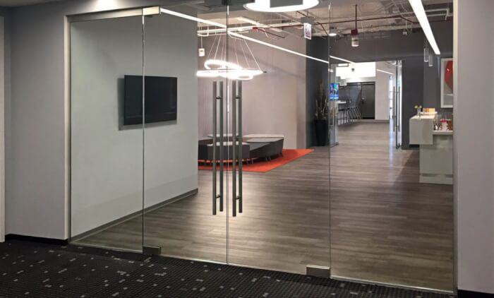 Cửa kính cường lực kiểu cánh mở quay là sản phẩm được sử dụng làm cửa văn phòng khá nhiều vì tính ổn định và độ cân xứng của nó.