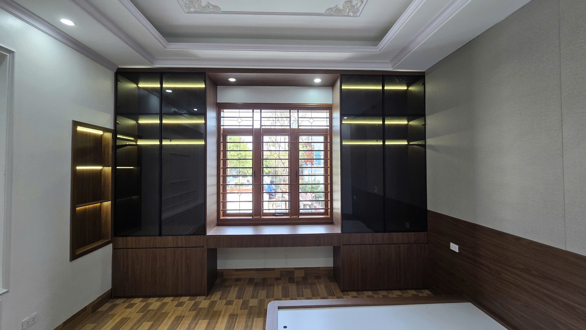 Thiết kế sang trọng, đậm chất tân cổ điển: Họa tiết phào chỉ tinh tế kết hợp với khung chấn song tạo điểm nhấn độc đáo.