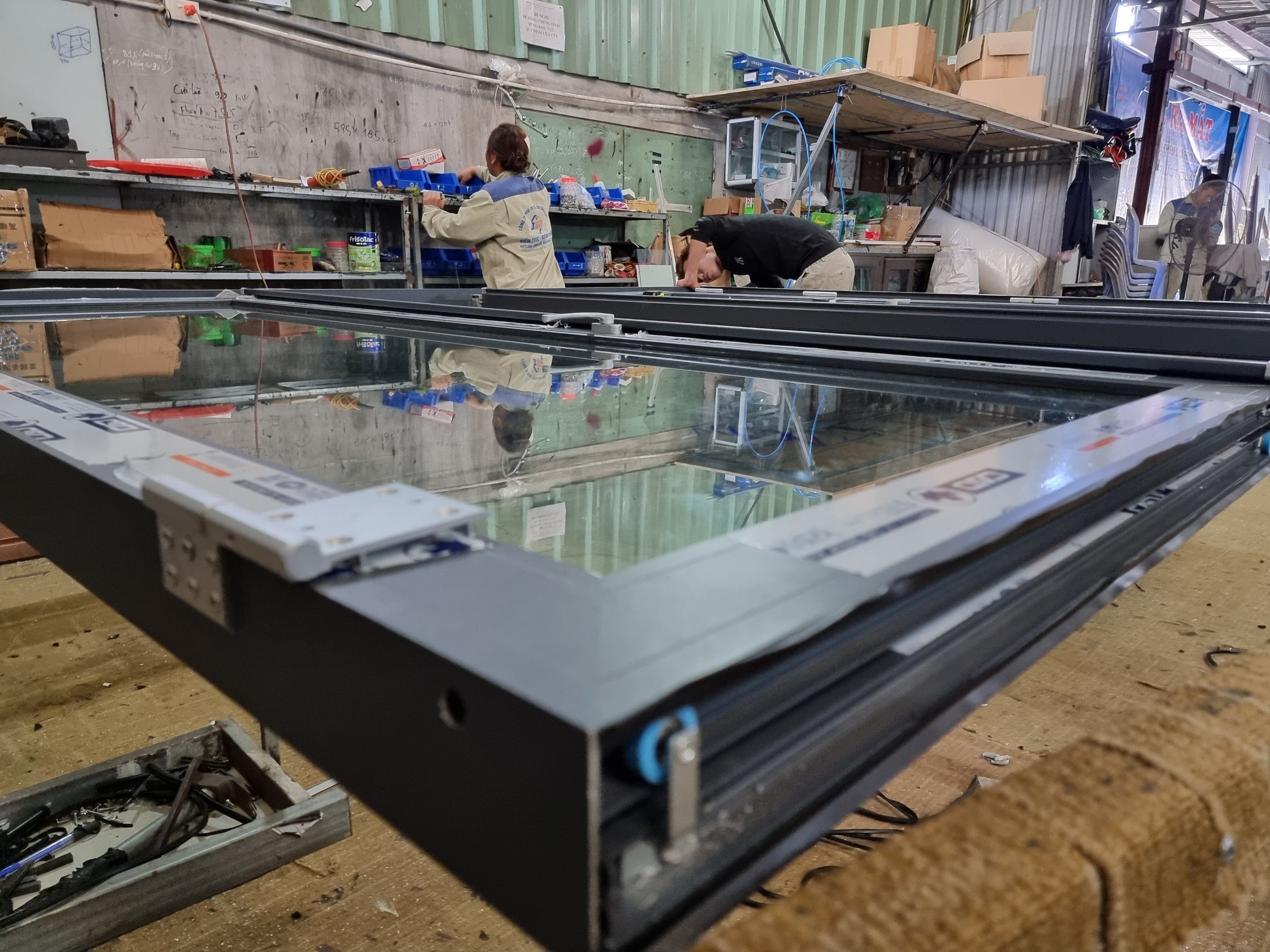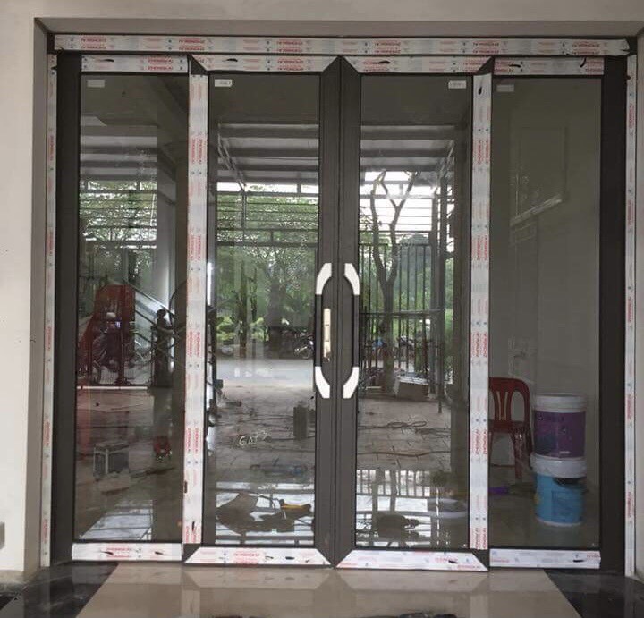 - Bản nhôm khi lắp vào khuôn cửa rộng khoảng 80mm.