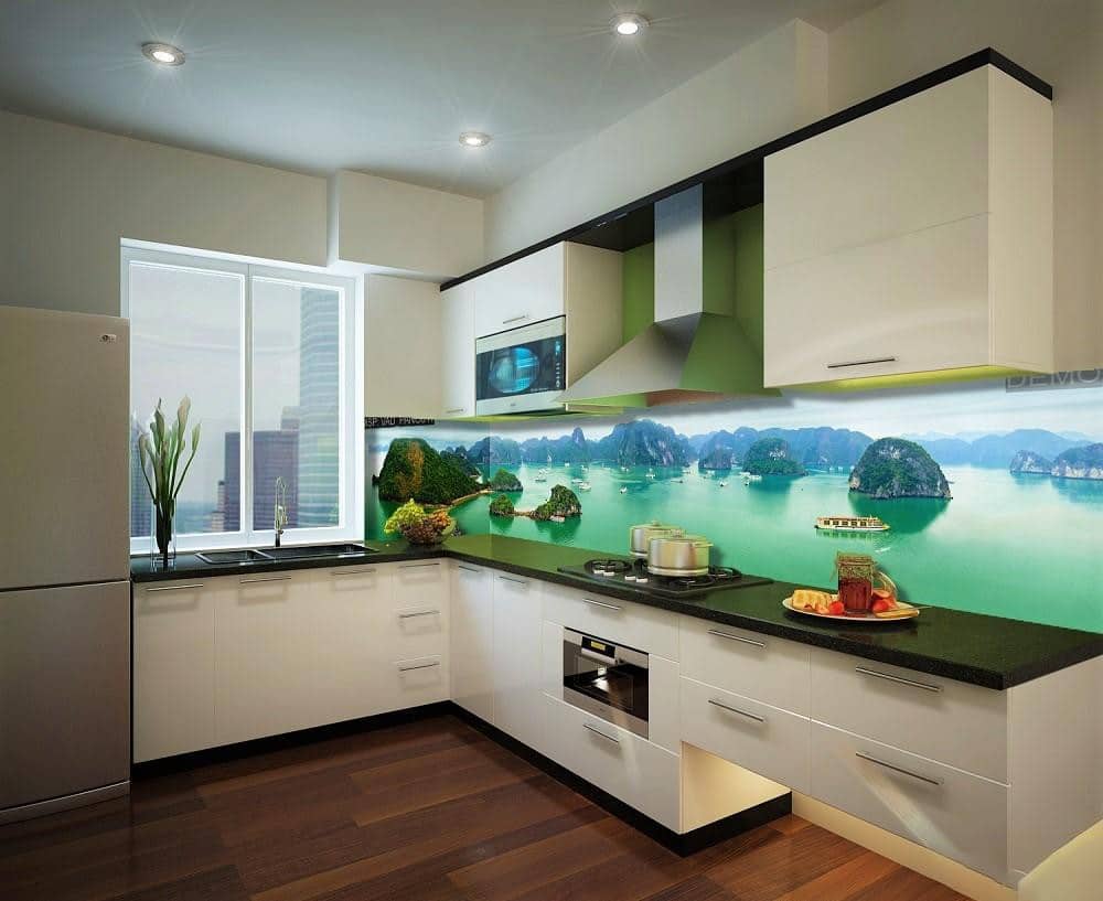 Bên cạnh đó, sử dụng những mẫu kính ốp bếp hoa văn cũng giúp bạn tiết kiệm được nhiều thời gian; công sức lau chùi sau mỗi lần sử dụng.