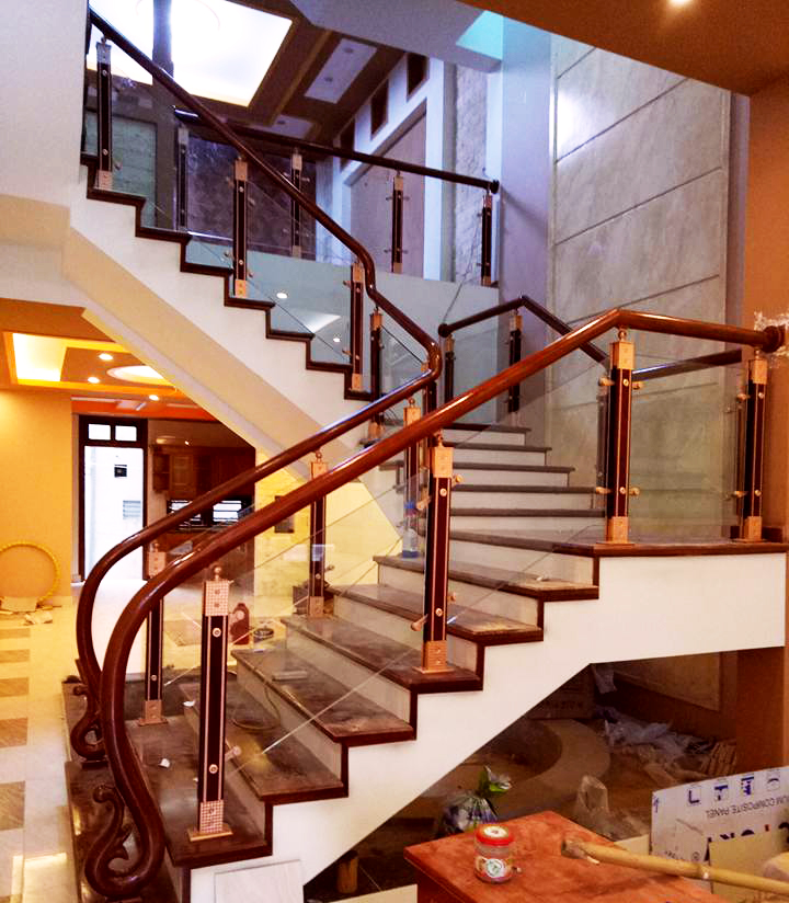 Ngoài ra phần tay vịn cầu thang có thể thiết kế bằng nhôm, inox, gỗ, giả gỗ. Đặc biệt là những mẫu cầu thang kính tay vịn gỗ thì sẽ có mức giá cao hơn hẳn so với các loại cầu thang còn lại.